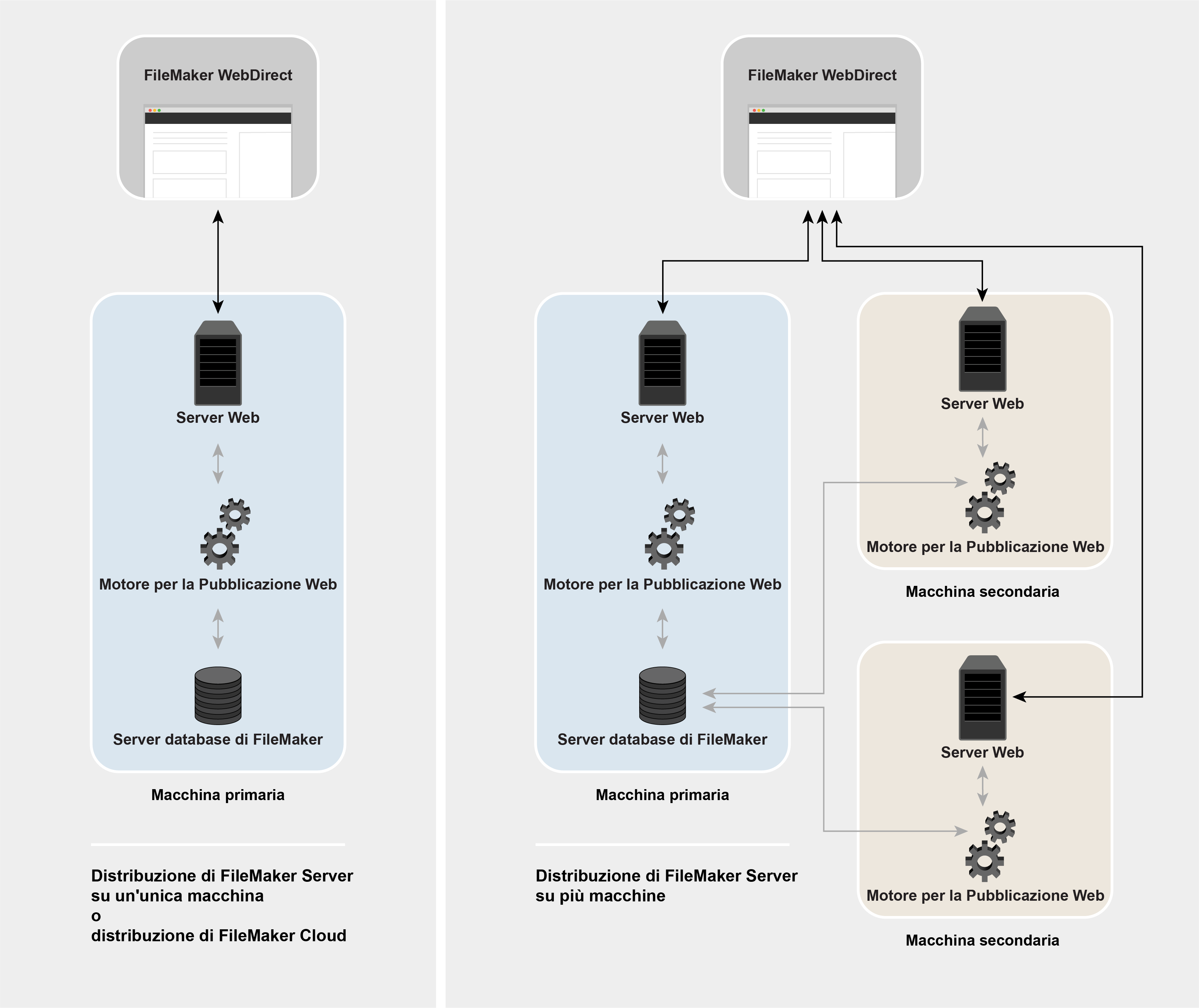 FileMaker Server e FileMaker Cloud comprendono i seguenti componenti: